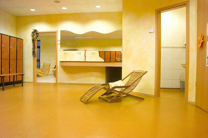 Almanya'nın Stuttgart şehri yakınlarında faaliyet gösteren "Body & Soul" isimli Fitness Merkezi temiz ve bakımlı bir işletme olmasından dolayı özellikle kadınların gözdesi. Kısa bir süre önce tamamlanan büyük çaplı restorasyon çalışmaları kapsamında; soyunma odaları, duş alanları ve solaryum odalarınnın zeminleri Silikal Reaktif reçine esaslı zemin kaplama sistemleri ile yenilendi. Sarı-turuncu tonlarda uygulanan zemin kaplamaları odalara sıcak ve positif bir hava kattı. Renkli Flakes uygulamalı zemin kaplamaları sayesinde, çok kısa sürede tekrar kullanıma açılan Fitness Merkezinde özellikle yük asansörünün  ve ağır spor aletlerinin bulunduğu  bölümlerde mekanik yük dayanımı ve kayma emniyeti de düşünüldü. Sarı, kırmızı ve kahverengi  renk tonlarının tercih edildiği flakes uygulamalı zeminler,  işletmenin kurumsal iç  mimarisi ile çok iyi bir uyum sergiliyor.