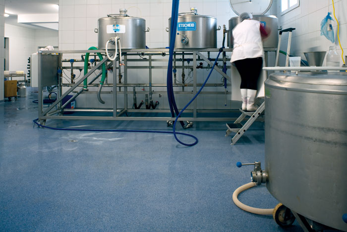 Hijyenik ve temizliği kolay zeminler, mandıra tesislerinde  işlerinizi önemli ölçüde kolaylaştırır.